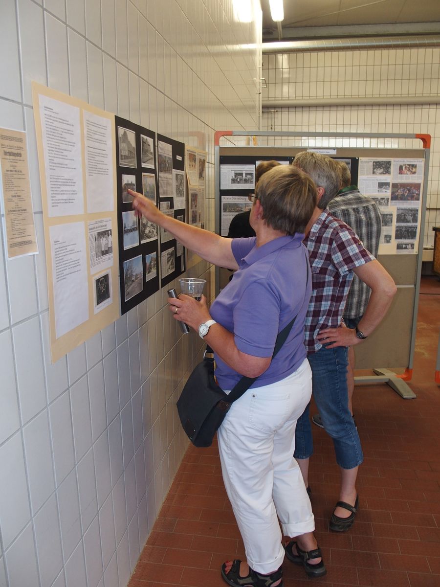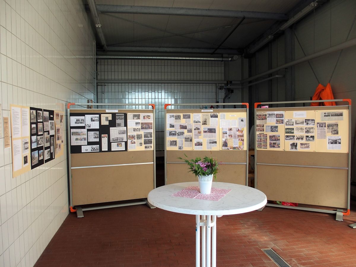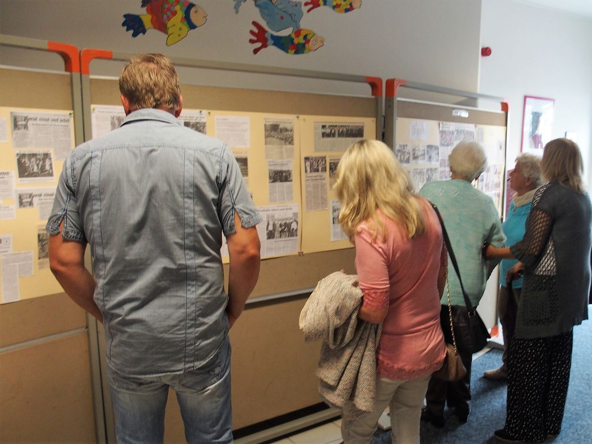Das besondere Interesse der Ausstellungsbesucherinnen und -besucher galt den zahlreichen Zeitungsartikeln und Fotos, die die Mitglieder des Ortsarchivs aus dessen umfangreichen Beständen herausgesucht hatten.