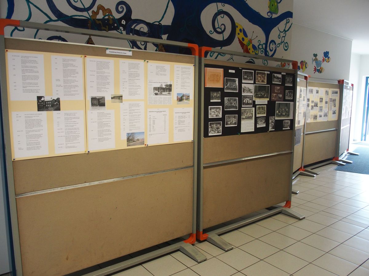 Auf mehreren Plakaten wurde die Entwicklung des Horster Schulwesens vom 16. Jahrhundert bis ins Jahr 2011 beschrieben.