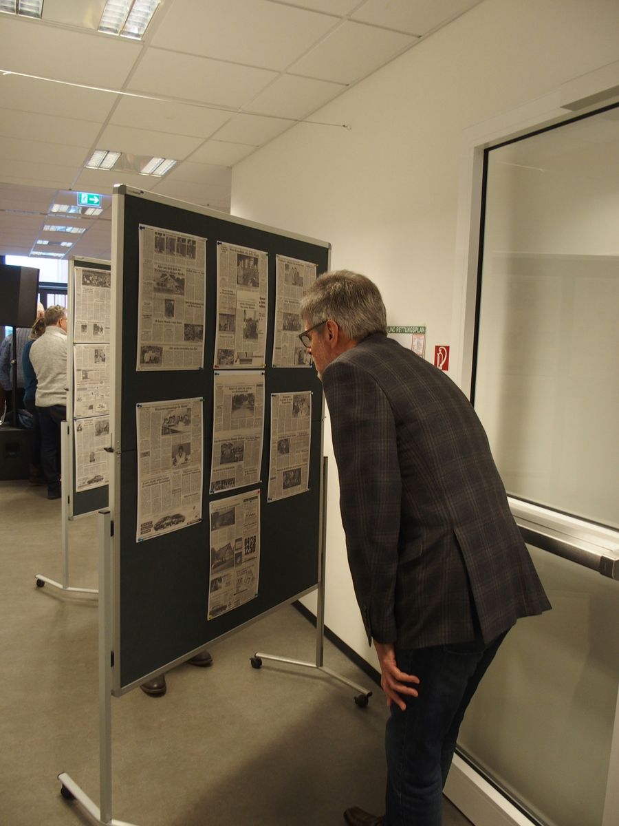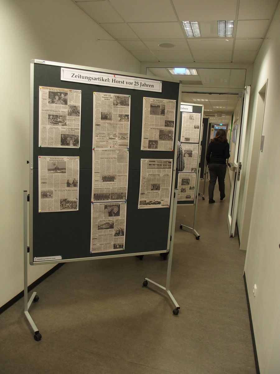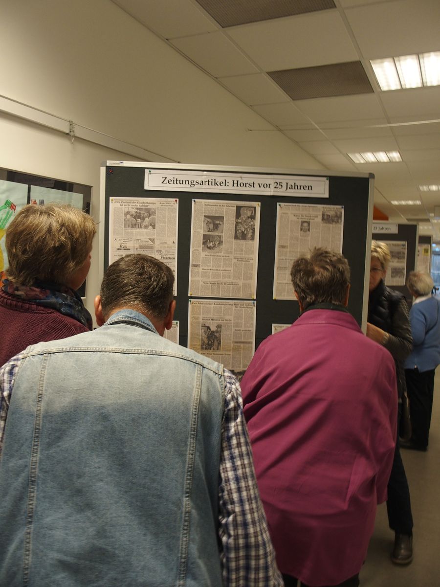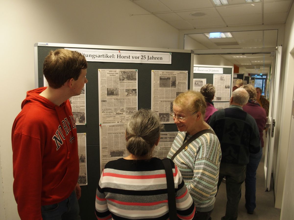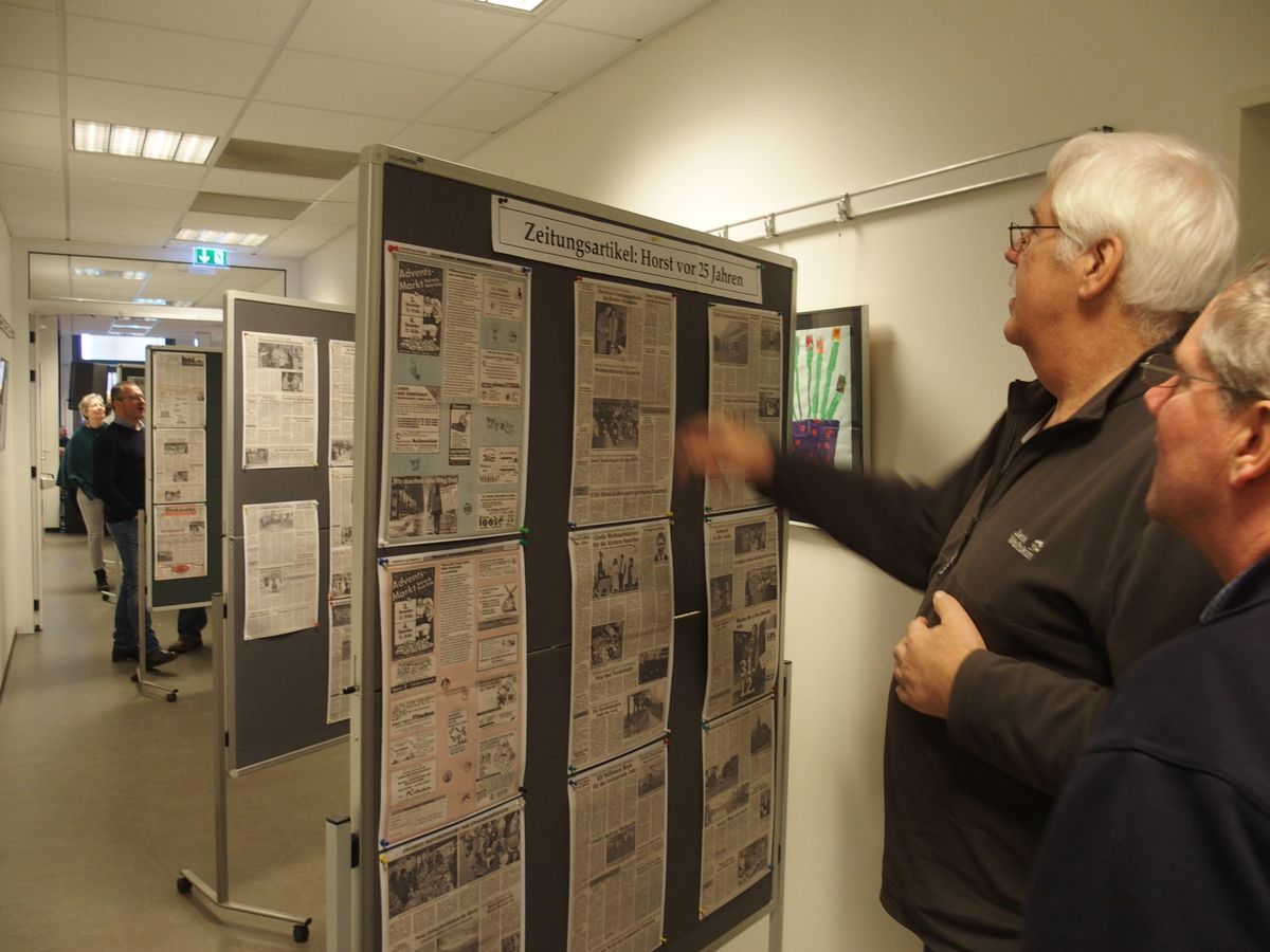 Viele Gäste des Empfangs nutzten die Gelegenheit, sich anhand der ausgestellten Artikel darüber zu informieren, welche Themen vor einem Vierteljahrhundert in Horst im Vordergrund standen und welche Personen damals Hauptakteure waren.