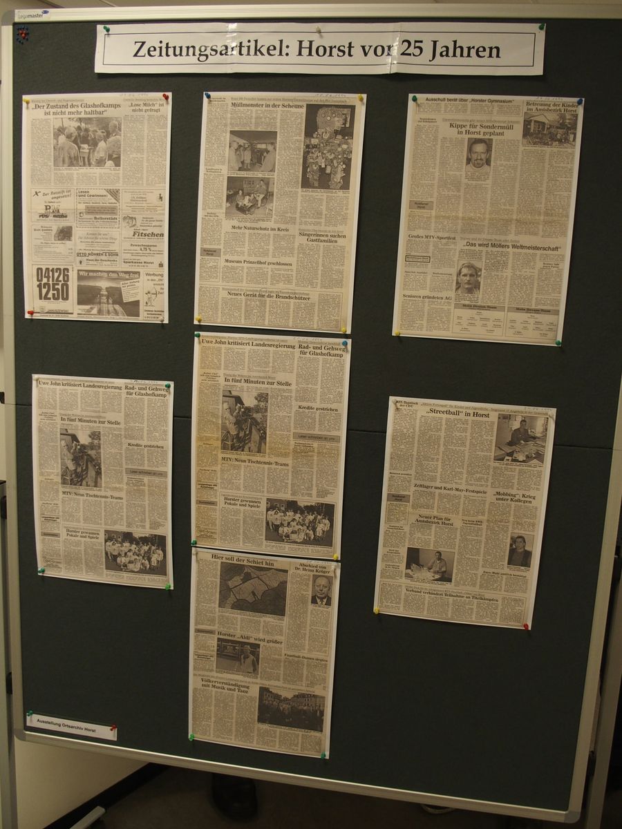 Während des Horster Neujahrsempfangs zeigte das Ortsarchiv wie seit Jahren üblich ausgewählte, 25 Jahre alte Presseberichte aus der Gemeinde.