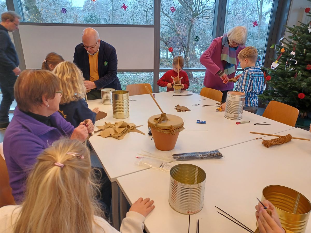Am 13.12.2022 unterstützten Mitglieder des Ortsarchivs Schüler*innen der Horster Grundschule beim Bau eigener Rummelpötte.