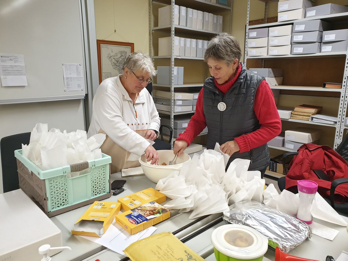 Elly Böttger (Ortsarchiv) verteilte an alle Interessenten selbstgebackene Pfütten.