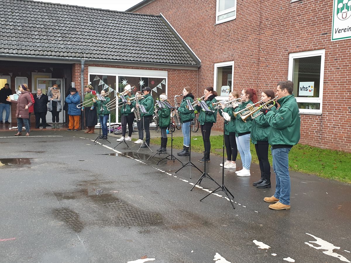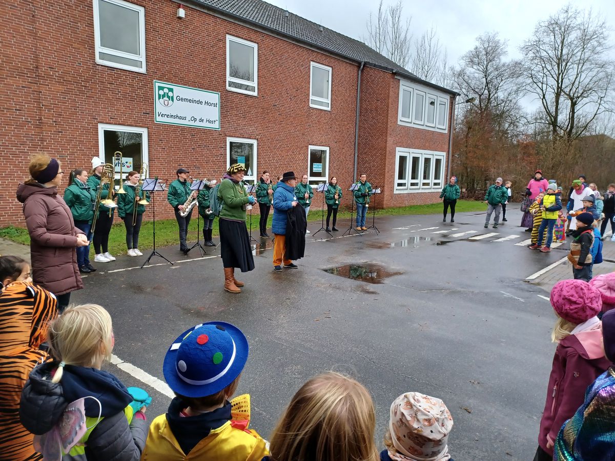 Anschließend wurden die drei Rummelpottlieder noch einmal mit musikalischer Begleitung durch das Musik-Corps Horst geübt.