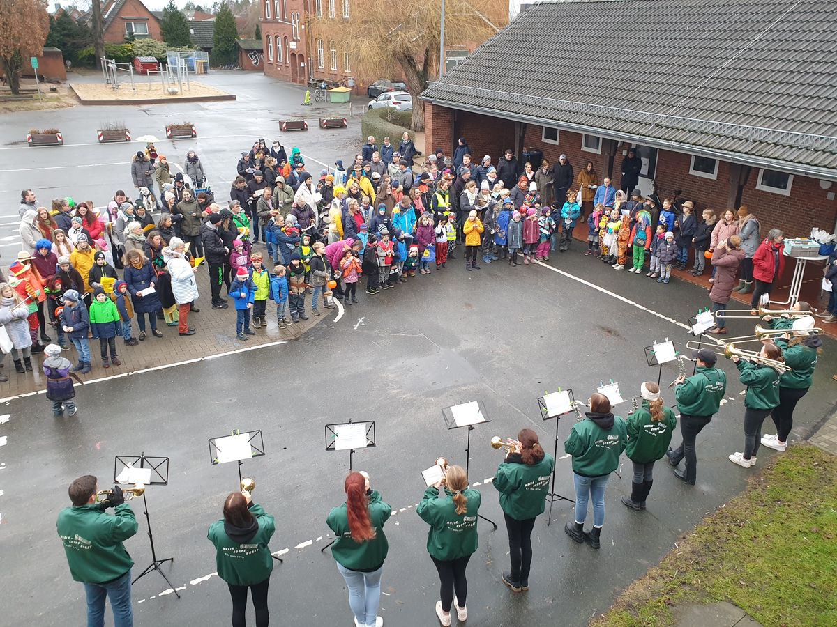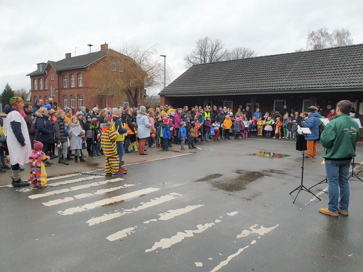 Am 31.12.2022 versammelten sich ca. 200 Kinder und Erwachsene gegen 15 Uhr am Vereinshaus „Op de Host“. Viele Kinder kamen fantasievoll verkleidet und teilweise auch geschminkt. Einige brachten Rummelpötte, Rasseln, Topfdeckel, Kochlöffel und vergleichbare Utensilien zum Krachmachen mit.