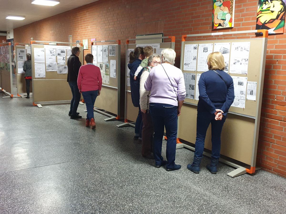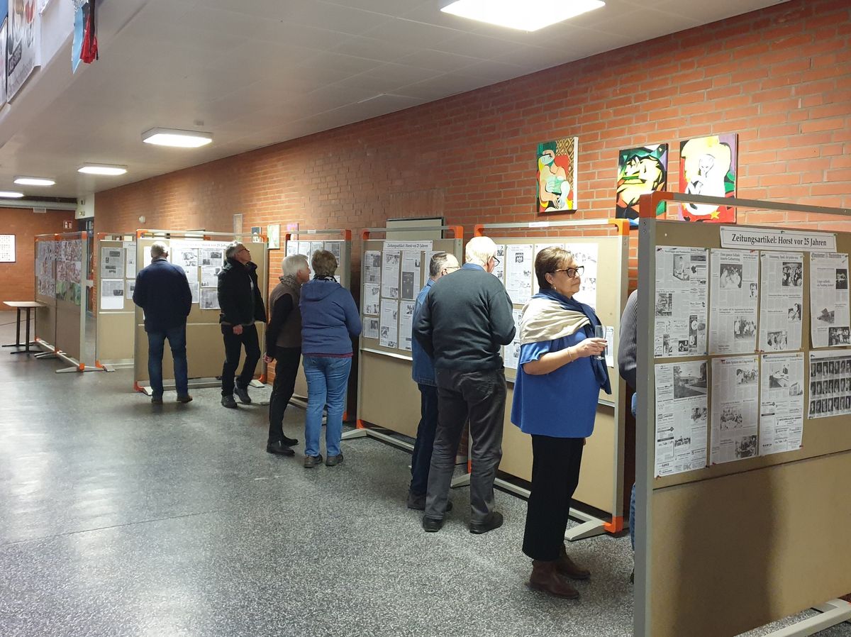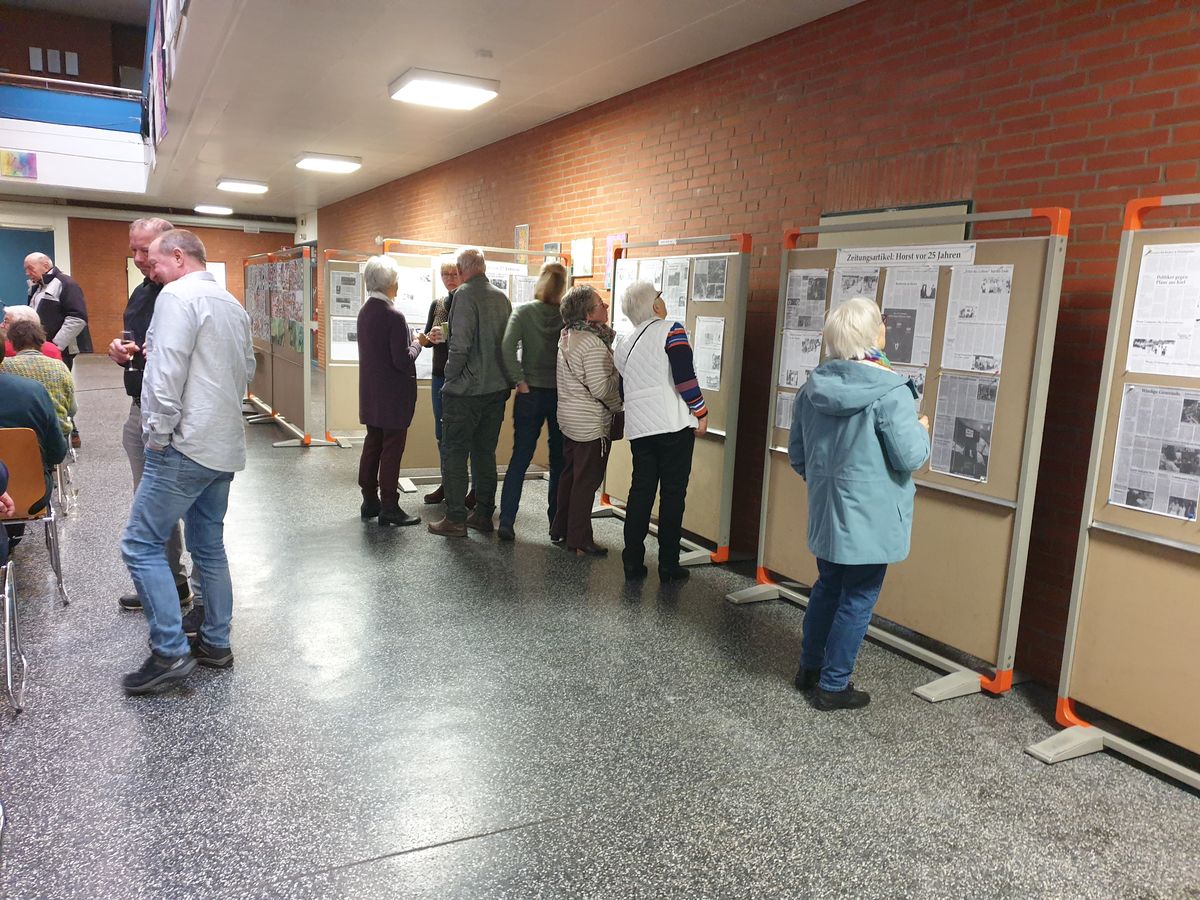 Etliche Gäste des Empfangs nutzten die Gelegenheit, sich anhand der ausgestellten Artikel darüber zu informieren, welche Themen vor einem Vierteljahrhundert in Horst im Vordergrund standen und welche Personen damals Hauptakteure waren. Auch ließ sich nachvollziehen, welche Ereignisse damals das Leben in der Gemeinde beeinflussten.