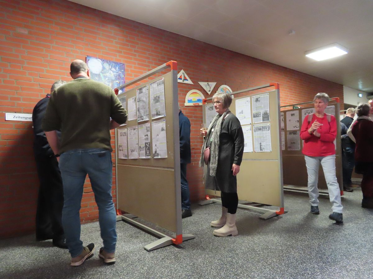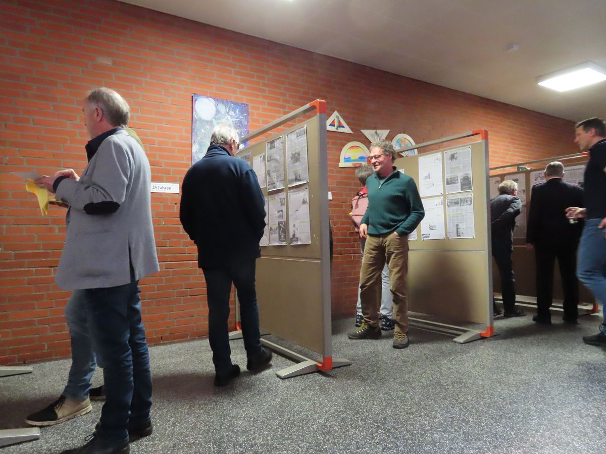 Etliche Gäste des Empfangs nutzten die Gelegenheit, sich anhand der ausgestellten Artikel darüber zu informieren, welche Themen vor einem Vierteljahrhundert in Horst im Vordergrund standen, welche Personen damals Hauptakteure waren und welche Ereignisse seinerzeit das Leben in der Gemeinde beeinflussten.